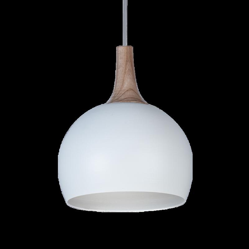 COLGANTE ESCOCIA E27 BOCHA BLANCA DETALLE MADERA